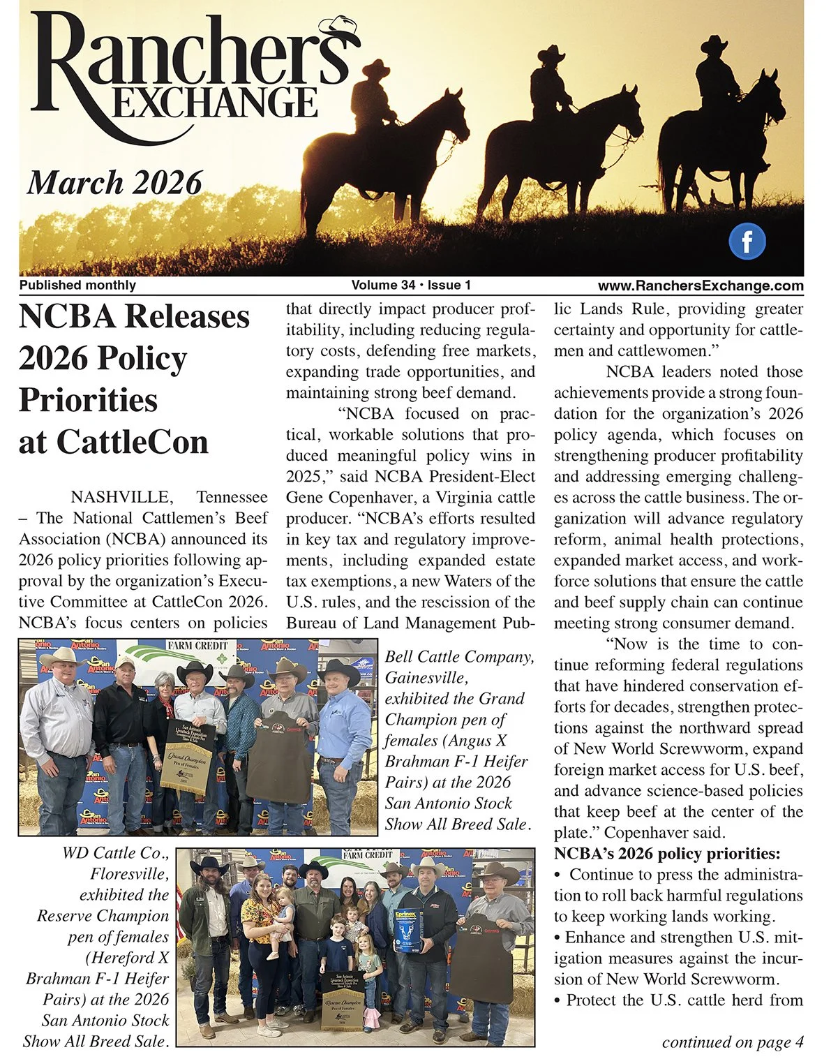 Ranchers Exchange, published since 1993, has served as an information source for cattlemen, landowners and anyone who has an interest in agriculture in Texas. Our objective has been to provide cattlemen and landowners with current information concerning livestock and land ownership issues.